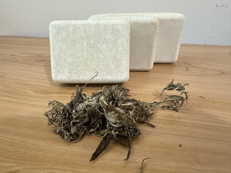Ingredients : Organic Virgin Coconut Oil,Palm oil,Castor Oil,Sweet Almond Oil,Palm Kernel Oil,Mugwort Leaf with Herbs Extra Virgin Olive Infused Oil,Mugwort,Himalayan Pink Salt,Sodium hydroxide